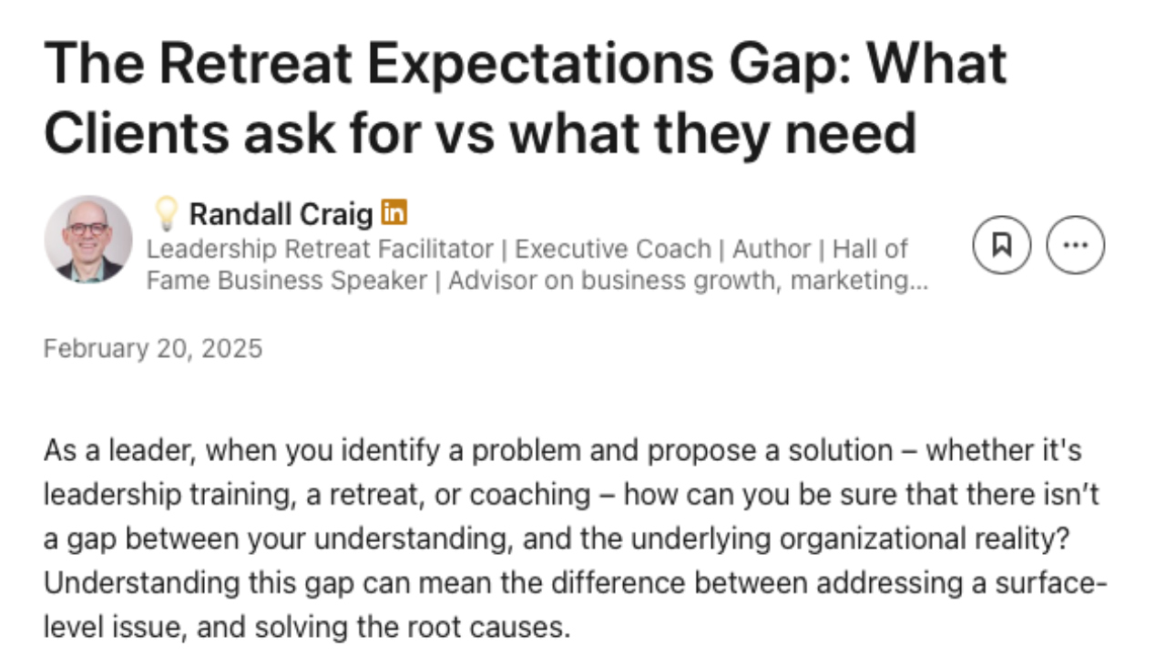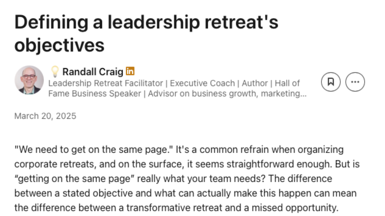 "Our retreats with Randall and Ronja have been a completely new experience for us. Our retreats had previously never had an impact on the organization; the travel and luxury were just considered a job perk. Now our development days and post-retreat support really propel our teams' success. I wish we knew about them sooner."–I. K., COO