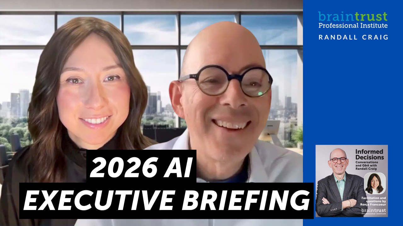 In this session, we are talking about Peer Masterminds. Here at the Braintrust Professional Institute, we are coaches, trainers, and facilitators. We work one-on-one coaching leaders, deliver management training to teams, and share our knowledge as keynote speakers.